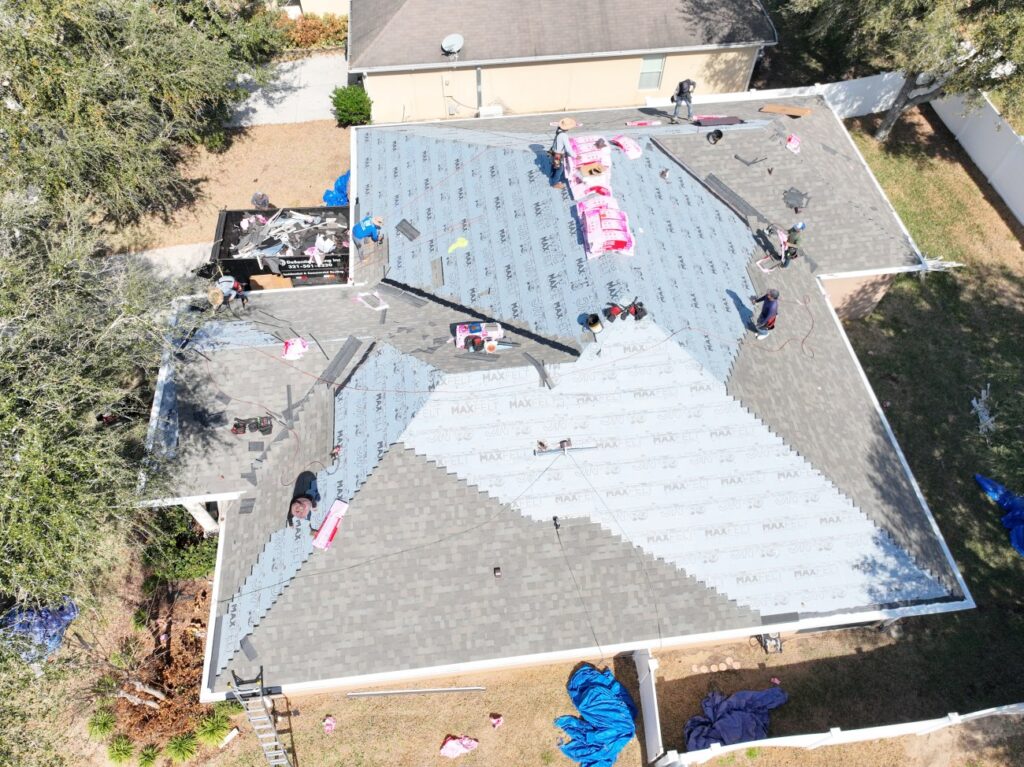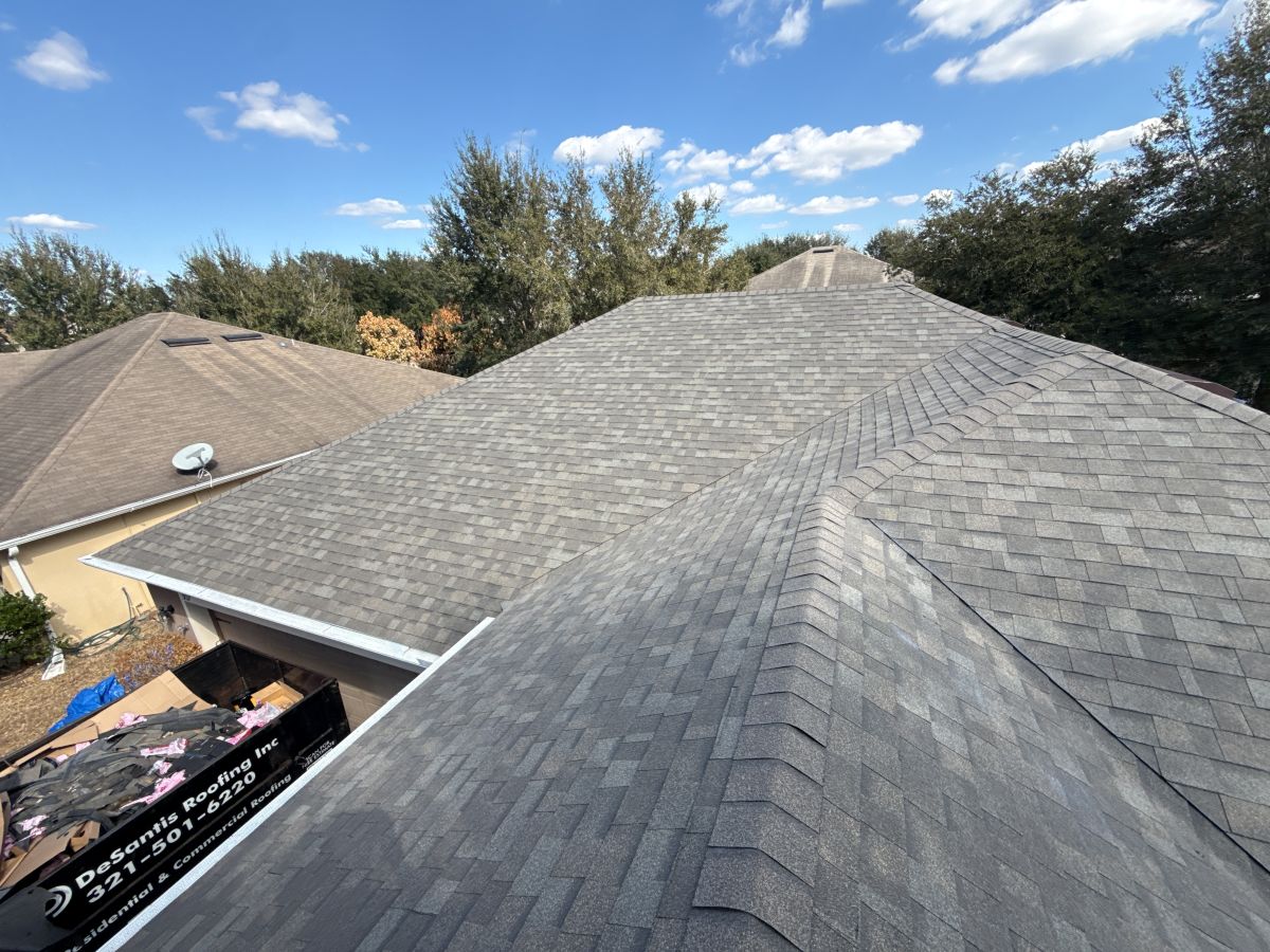 The team began by conducting a detailed roof assessment to map out the full scope of work. Once the plan was set, the old, worn shingles were systematically removed down to the deck. Every section of the underlying structure was carefully inspected for signs of moisture damage, soft spots, or deterioration that could compromise the new installation. With the deck confirmed to be in solid condition, a premium Owens Corning shingle system was installed across the entire roof. Owens Corning shingles are specifically engineered to withstand extreme heat, high winds, and UV exposure — making them an ideal choice for Florida’s challenging climate. High-performance synthetic underlayment was applied to create a superior moisture barrier, and all flashings were replaced around chimneys, valleys, and roof penetrations to eliminate potential leak points. Proper ridge ventilation was installed to promote airflow and reduce heat buildup in the attic, extending the roof’s lifespan and improving energy efficiency.